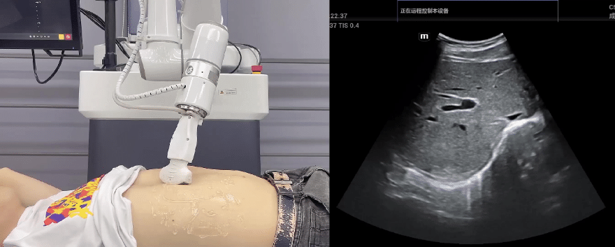 米兰·(milan)中国机器人末端搭载超生L13-3N线阵探头,可以对浅表小器官和外周血管进行超声检查;搭建C5-1s凸阵探头,可以对腹部(肝、胆、胰、肾等器官进行超声检查)