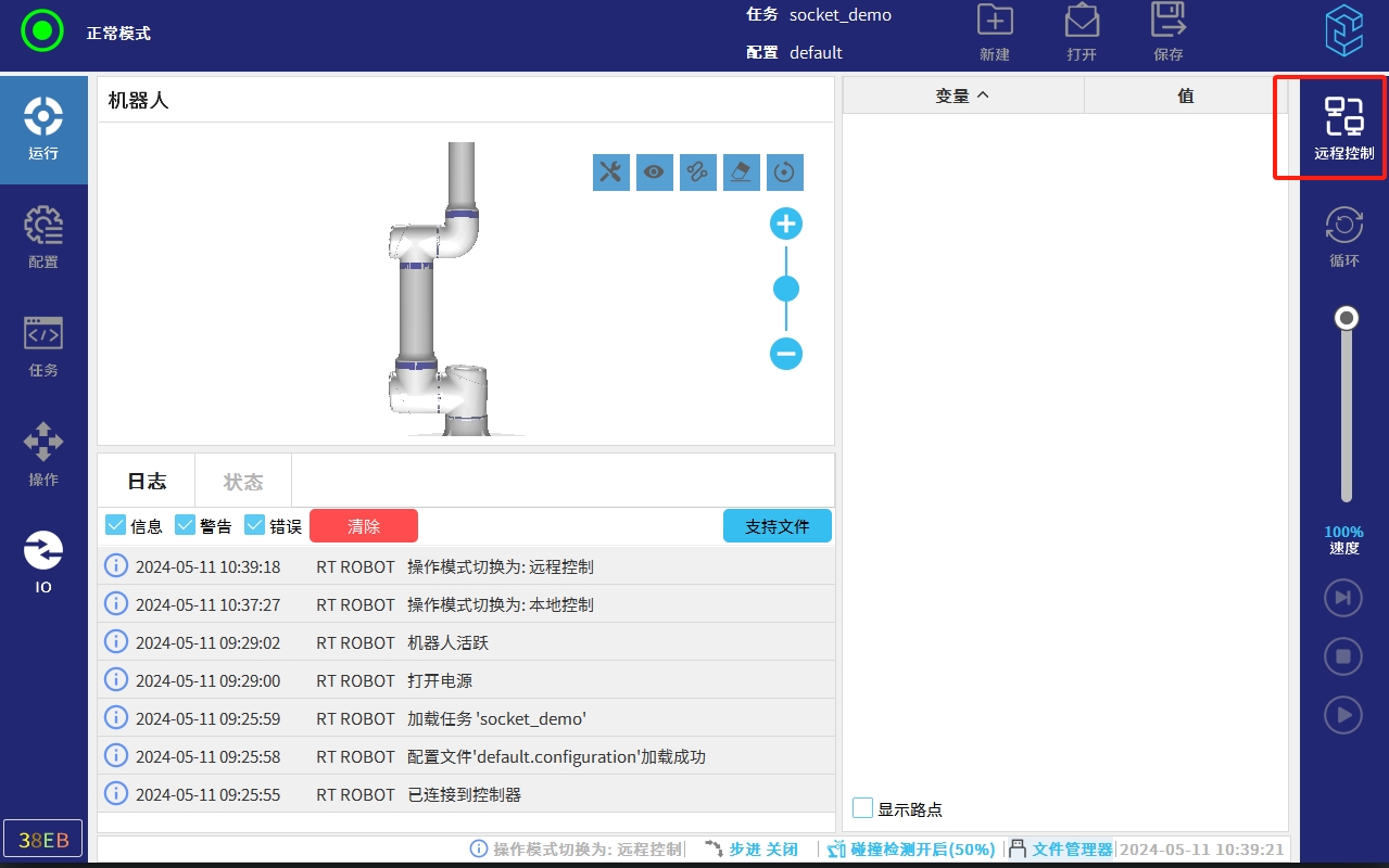 将机器人切换为远程控制模式