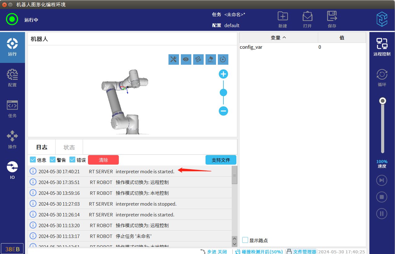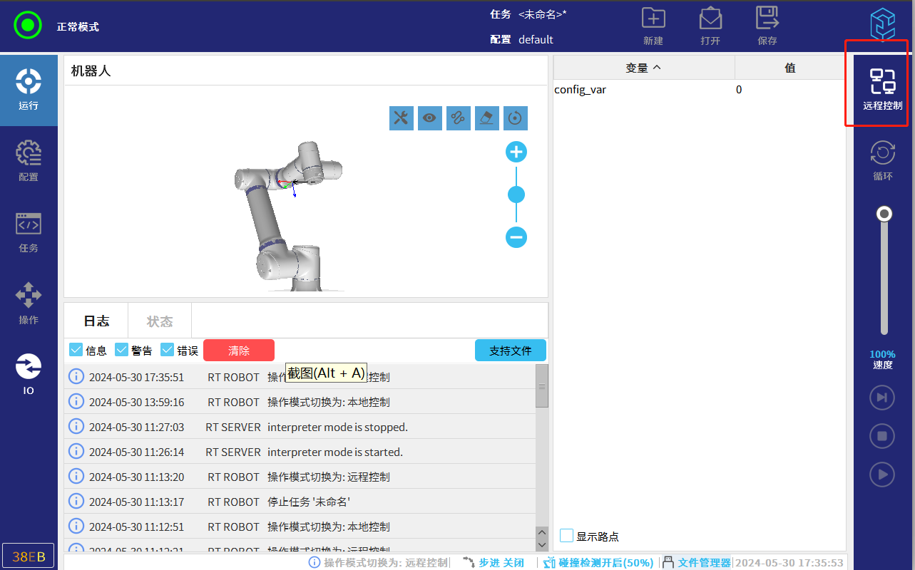 1.将机器人打到远程模式