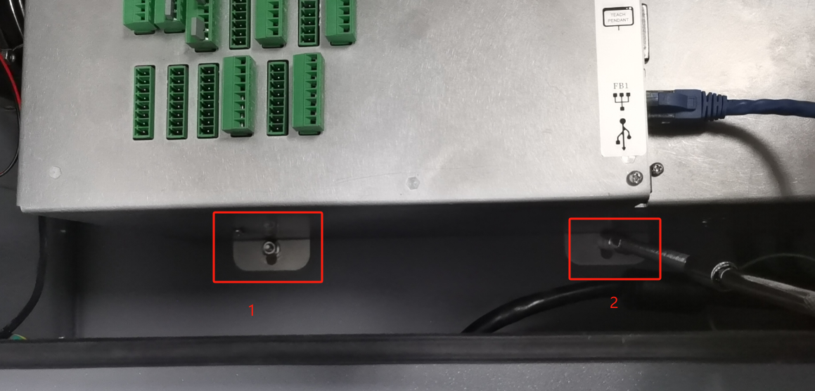 2.1.1 检查控制柜上面的示教器插头是否松动,并紧固。