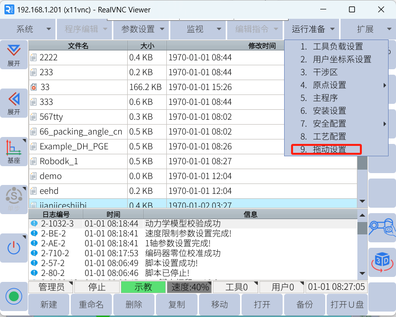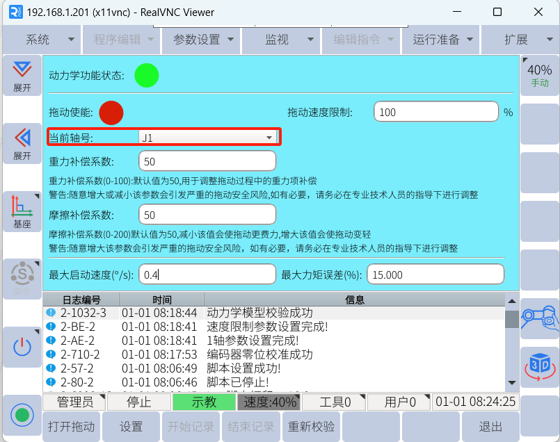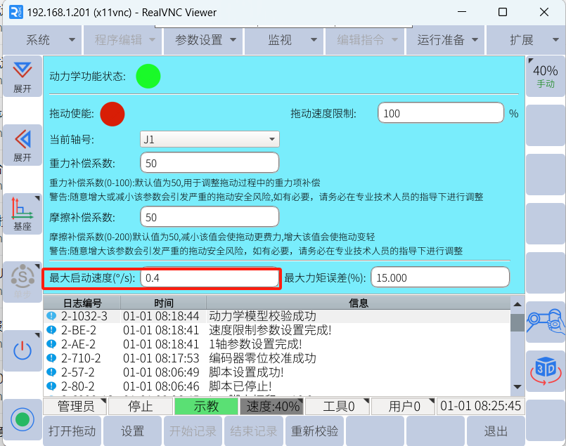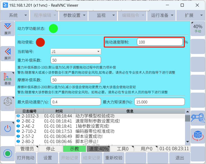 在实际操作中,我们常常会用到拖动,可以达到快速移动机器人的目的。设置合适的拖动参数可以使拖动变得更加灵活