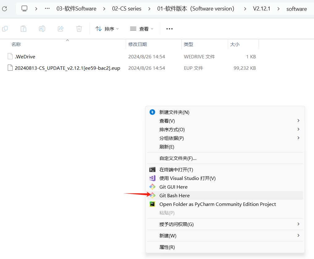 ● 打开文件所在的文件夹右键选择Git Bash Here