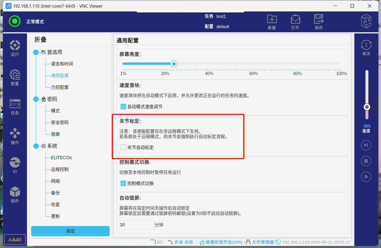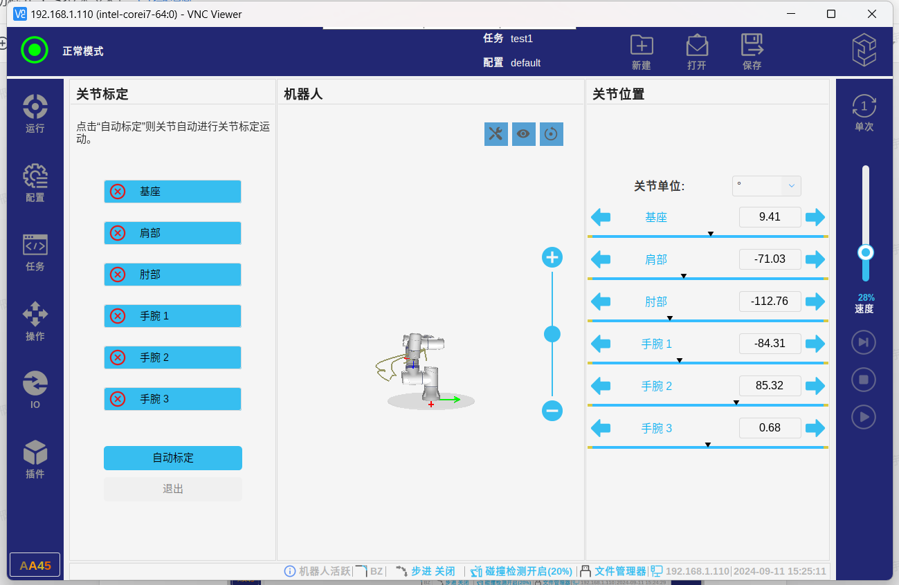 如需在本地模式下进行手动标定,即可在弹出自动标定页面后,点击自动标定按钮进行标定,各轴会小范围自动移动,完成后各轴为黄色状态退出即可。