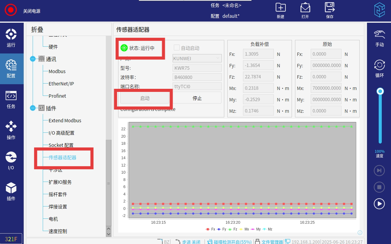 1.  打开力控传感器适配器