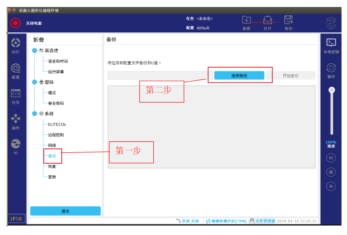 1、 用户可将任务和配置文件备份到 U 盘,以免发生意外删除程序配置等情况;