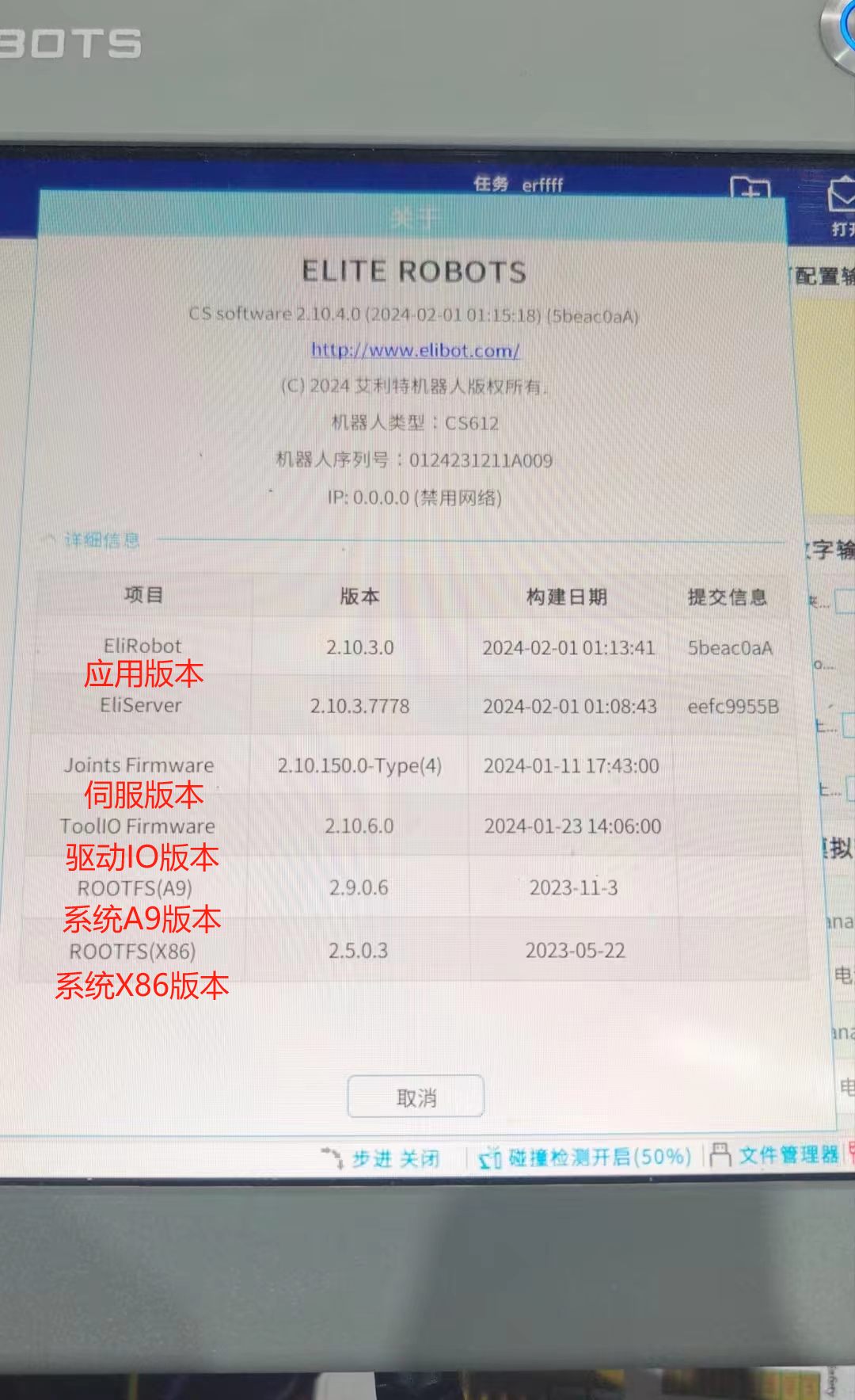应用:机器人软件版本