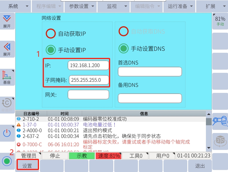 第一步-网线连接-机器人与PC通过网线连接(机器人连接接口为FB1口,通过交换机中转也可以实现)